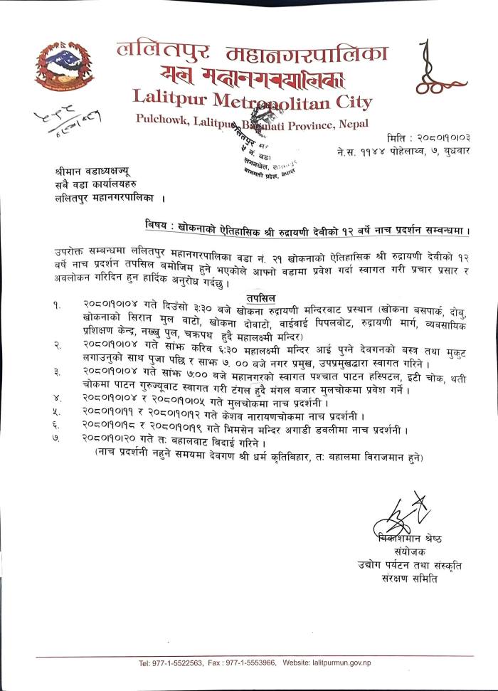 खोकनाको एतिहासिक श्री रुद्रायणी देवी को १२ वर्षे नाच प्रदर्शन सम्बन्धमा