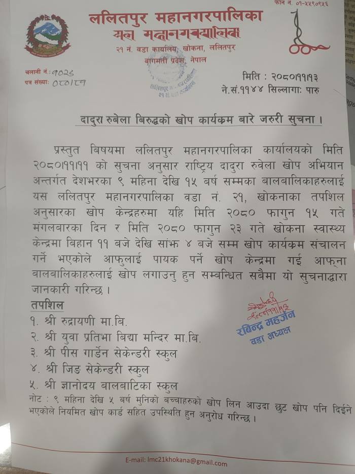 दादुरा रूबेला बिरूद्वकाे खाेप सम्बन्धि सुचना