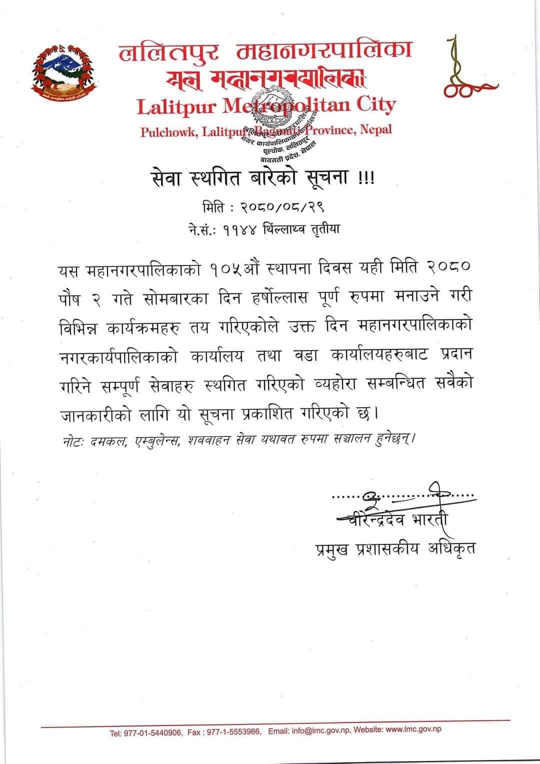 सेवा स्थगित बारेको सुचना